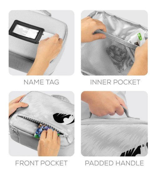 The main compartment is fully insulated and spacious enough to hold your daily essentials and extra snacks. The padded carry handle is comfortable to hold, and the rounded zippers are child-friendly.