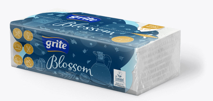 GRITE BLOSSOM two-ply paper towels are packaged in individual sheets that are easy to pull out. Made from the highest quality cellulose, they are strong, soft and white. One package contains 120 sheets.