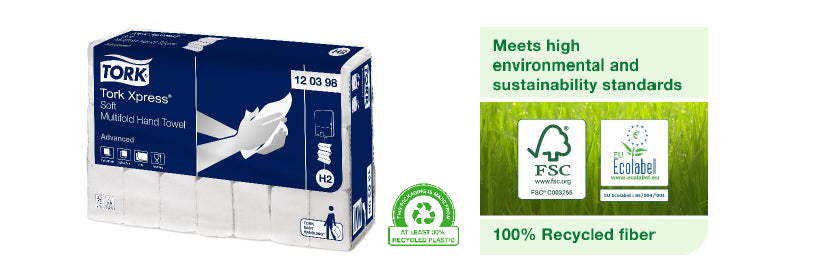 • Hand cleaning wipes H2 Tork Xpress® Multifold Soft Hand Towels Advanced.