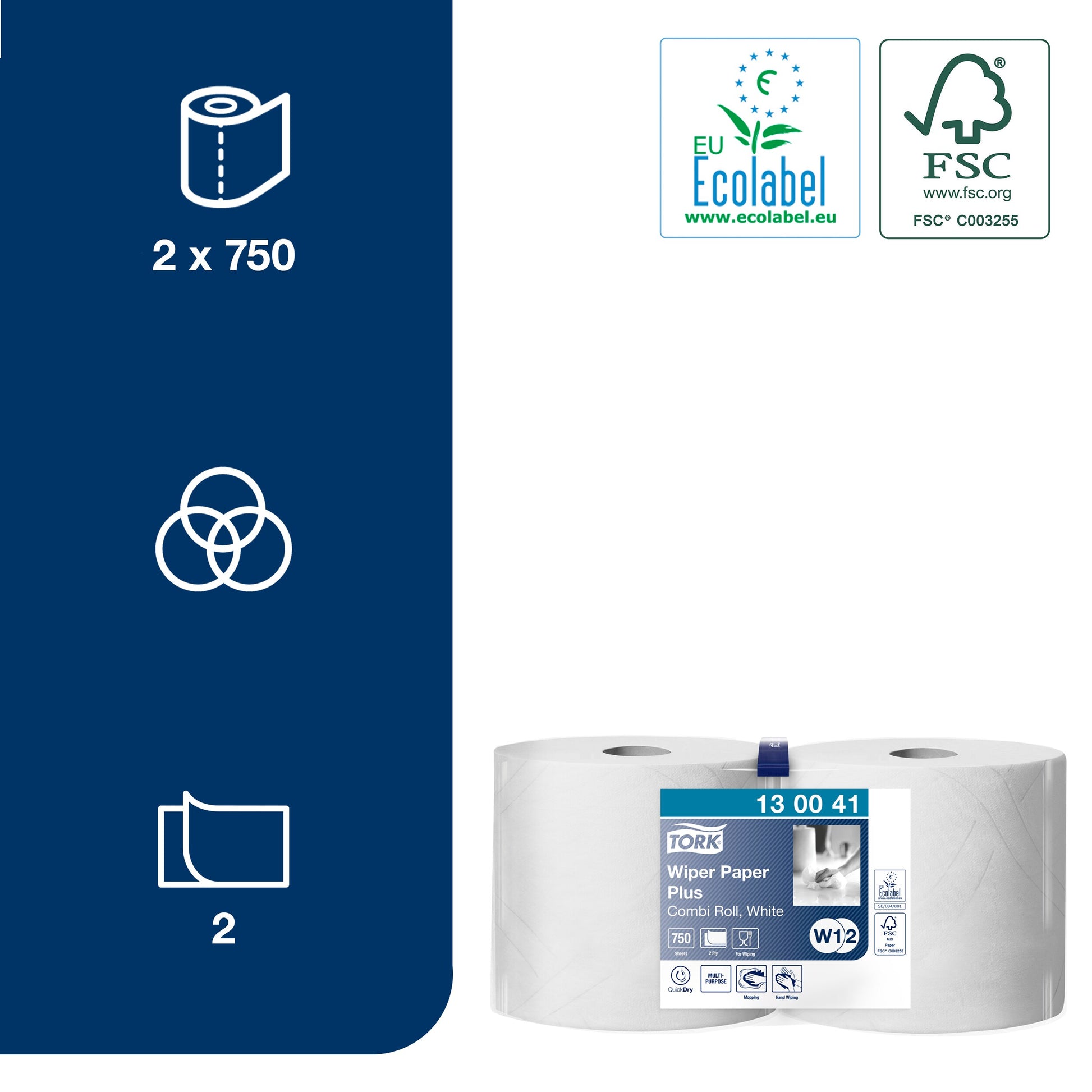 Industrial paper TORK Advanced 420 W1/W2, 130041, 2 ply, 23.5 cm x 255 m, white
