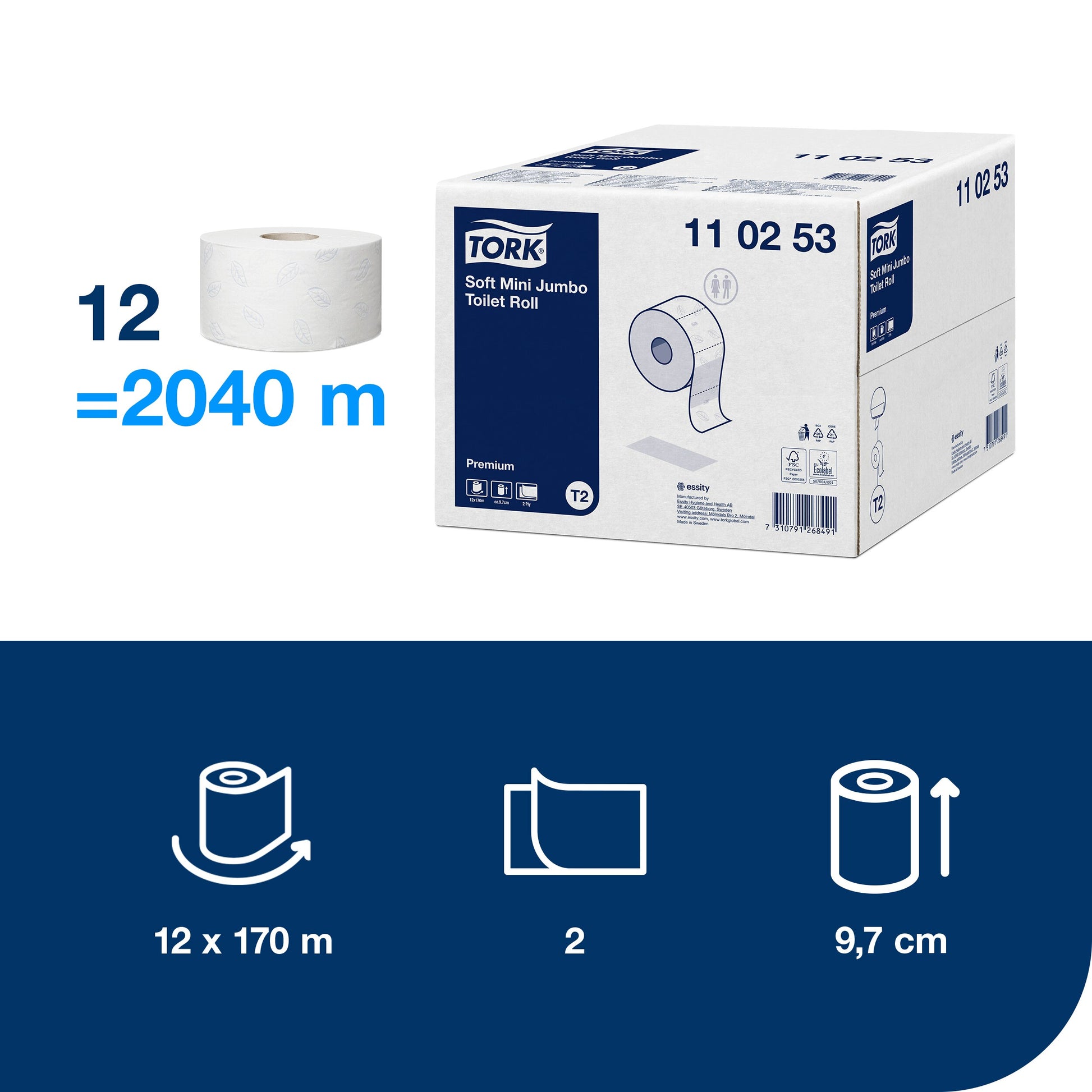 Toilet paper TORK PREMIUM MINI JUMBO T2 110253, 2 ply, 9.7 cm x 170 m, white