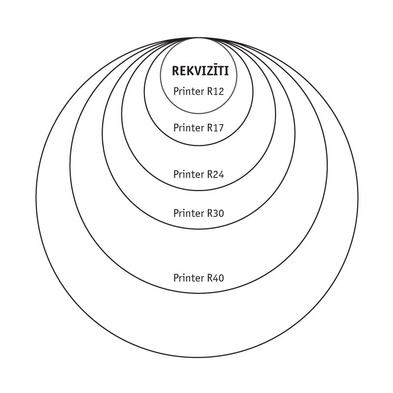 COLOP Apvalus antspaudas. Printer R24. Atspaudo diametras 24mm. Tinka E/R24 pagalvėlė. Gumos kodas: 9813-031. Teksto eilučių skaičius - 4. Juodos spalvos korpusas. Visi antspaudai su mėlynos spalvos pagalvėle. Kitų spalvų pagalvėlės ir korpusai - pagal specialų užsakymą.
