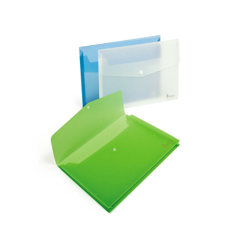 Patogus, talpus aplankalas dokumentams iš patvaraus, gražaus, pusiau skaidraus plastiko. Su spaustuku. Telpa 150 standartinių lapų. A4 formatas, žalios spalvos.