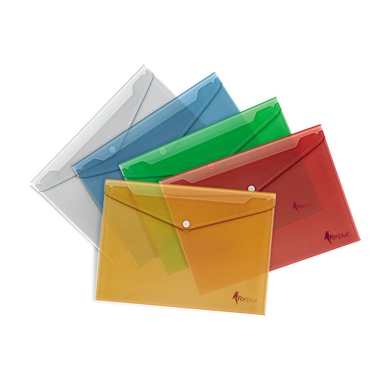 Aplankas (vokas) su plastikiniu spaustuku. Matmenys: 232x310mm. Pagamintas iš pusiau skaidraus spalvoto plastiko. Skirtas laikyti nedideli kiekį dokumentų. Geltonos spalvos.