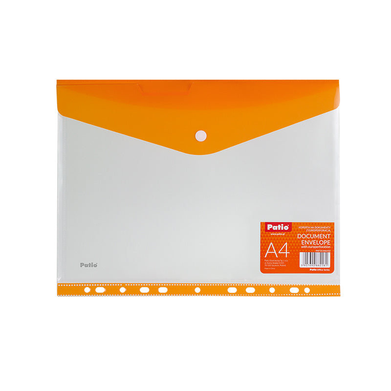 Aplankas (vokas) su spaustuku ir europerforacija PATIO, A4, PP, oranžinė sp.