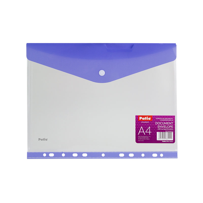 Aplankas (vokas) su spaustuku ir europerforacija PATIO, A4, PP, violetinė sp.