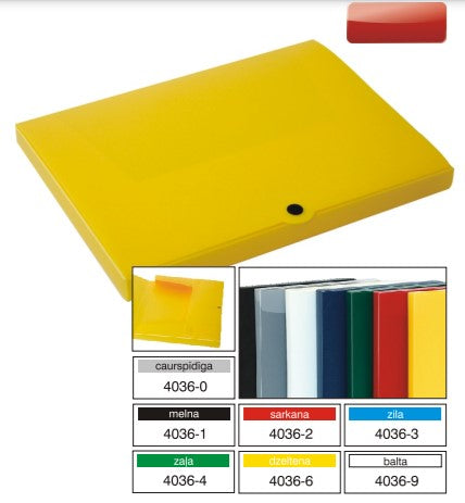 Aplankas (vokas) su spaustuku, plastikinis, geltonos spalvos, 2 cm