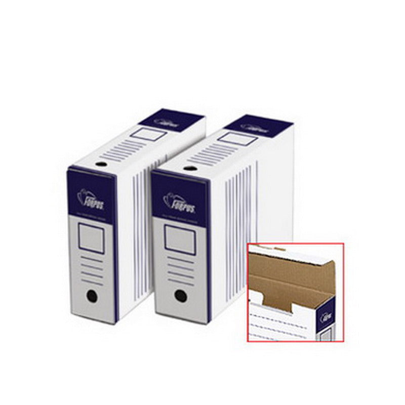 Archyvinė dėžė, A4. Matmenys (A x P x I): 240 x 322 x 100 mm. Pagaminta iš gofruoto kartono. Atsidaro per ilgąją kraštinę.