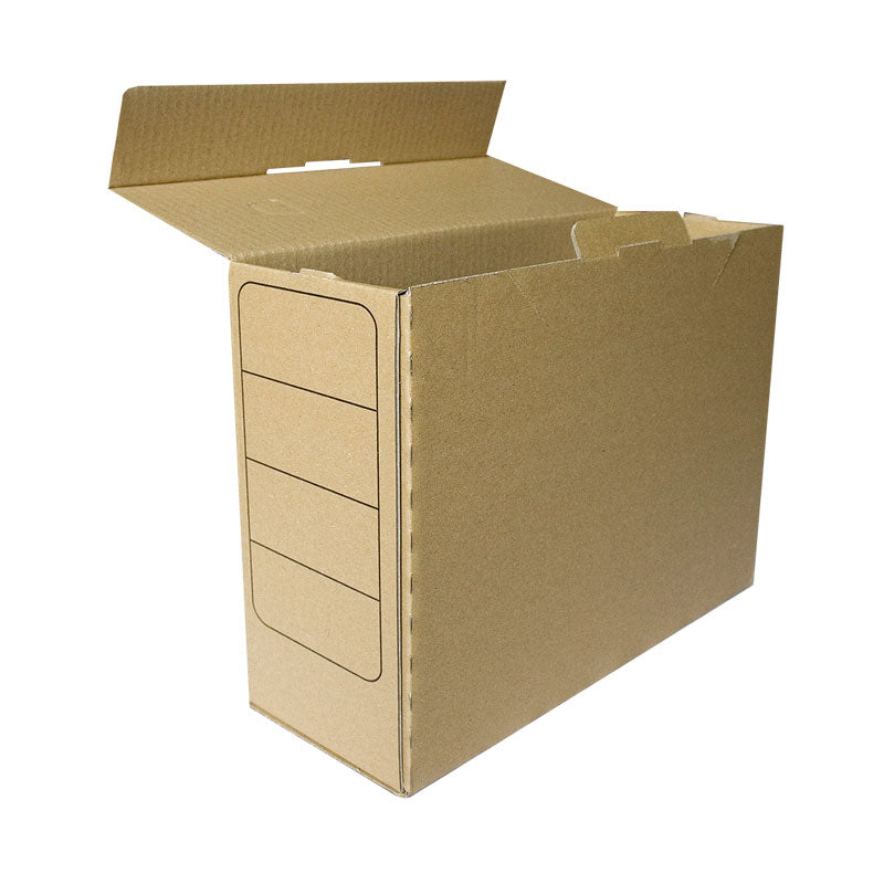 Atidaroma iš viršaus. Pagaminta iš trisluoksnio 100 % perdirbto gofro kartono. Matmenys (A x P x I): 243 x 120 x 320 mm. Rudos spalvos.