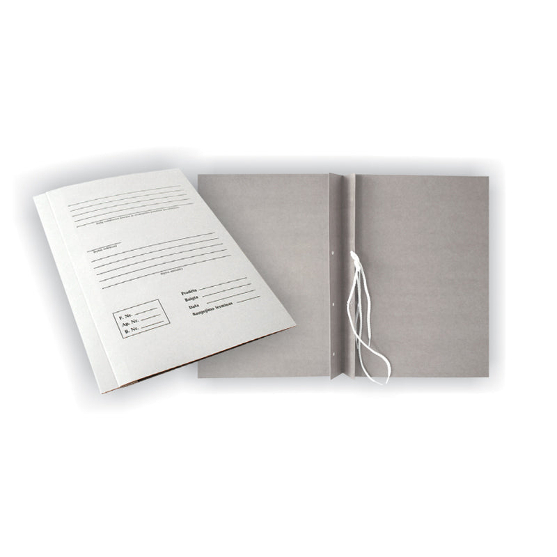 Pagamintas iš kartono. Su raišteliais. Pigus būdas dokumentams nešioti, archyvuoti. A4 formatas. Galima įdėti 370 – 430 lapų. Nugarėlė 4 cm. Balta spalva. Aplanko popieriaus gramatūra - 300 g/m2.