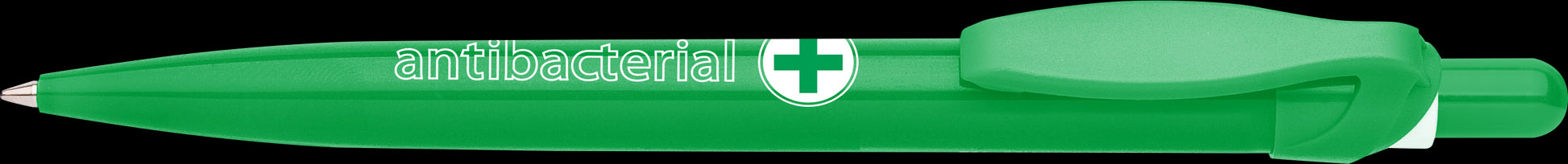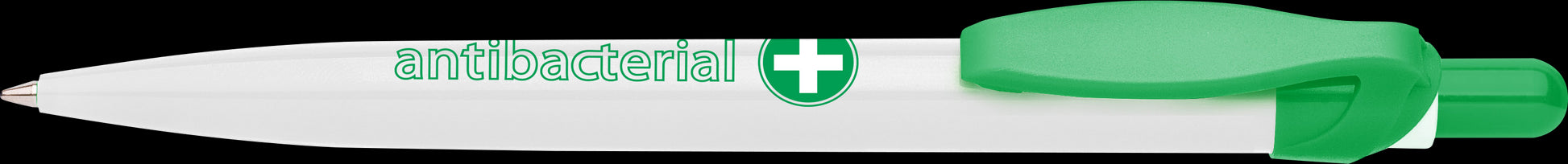 Antibakterinis automatinis tušinukas, pagamintas su sidabro biocido priedu, užtikrinančiu antibakterinę apsaugą. Ilgalaikis antibakterinis poveikis. Linijos storis: 0,8 mm, Rašymo ilgis: 2500m. Galimi baltos / žalios spalvos deriniai. Šerdelės: 200-00816, 200-11990