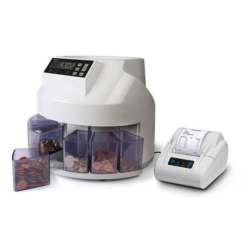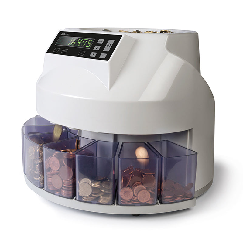 Skaičiuoja ir rūšiuoja 220 monetas per minutę.