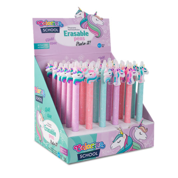 Automatinis trinamas rašiklis COLORINO vienaragis, įvairių spalvų, 0,5 mm