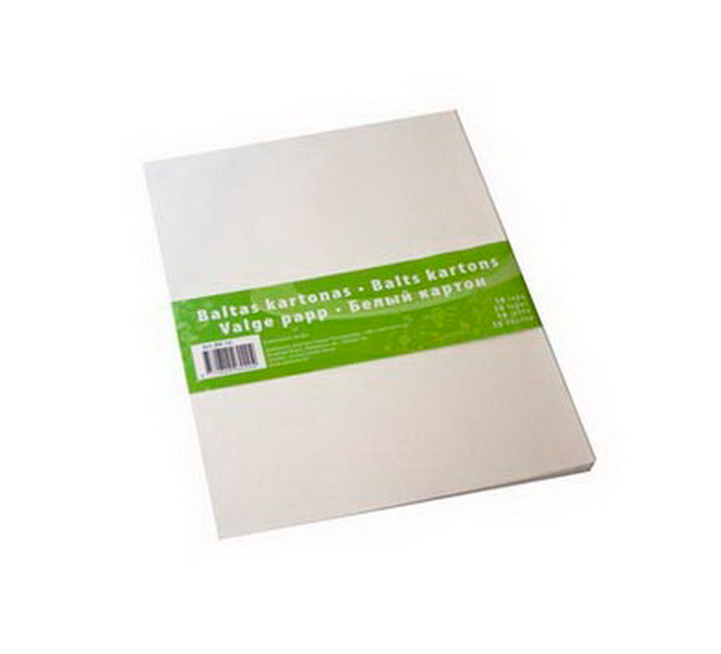 Baltas kartonas. A4 formato. Pakuotėje 10 lapų. Kartono storis - 250-280 gramų.