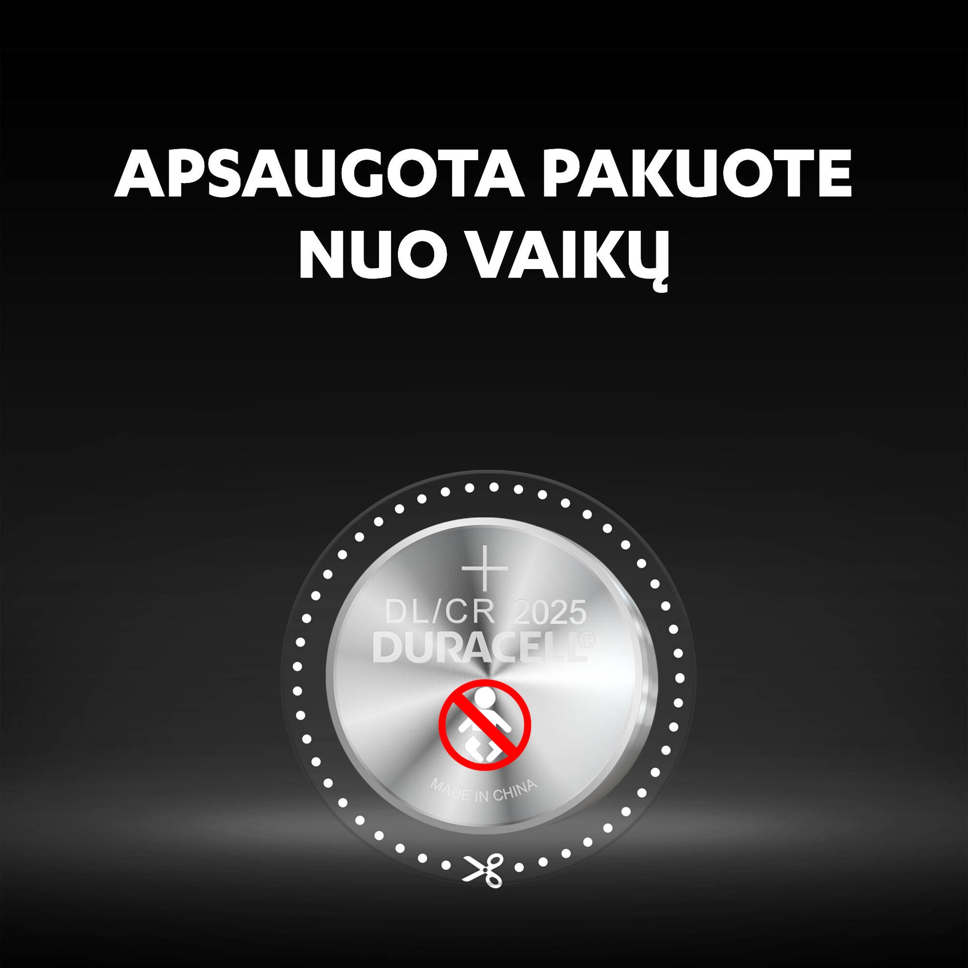 • „Duracell 2025“ ličio monetos tipo baterijoms naudojamas didelio grynumo lygio litis.