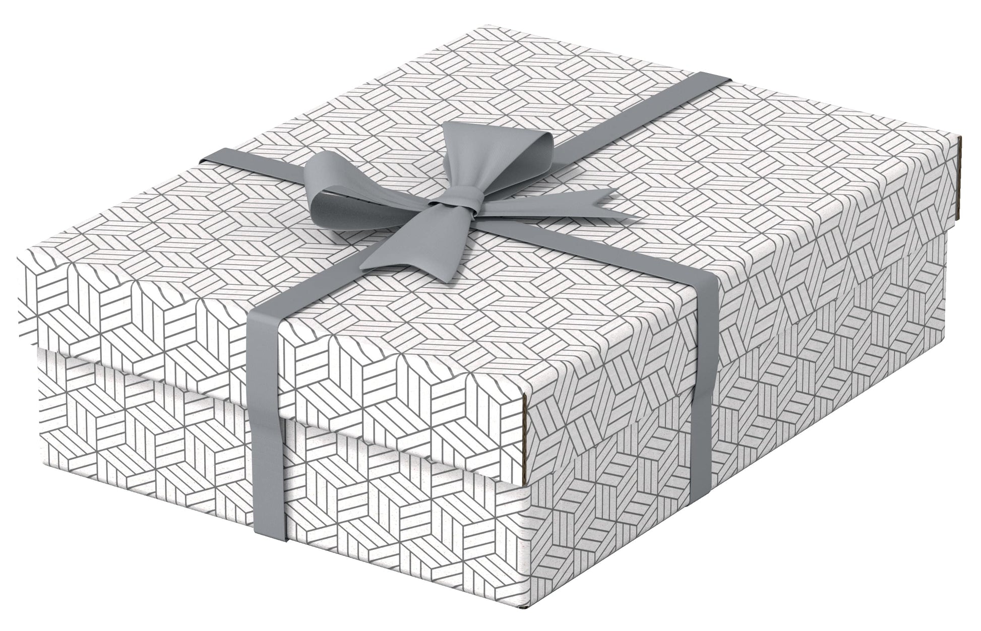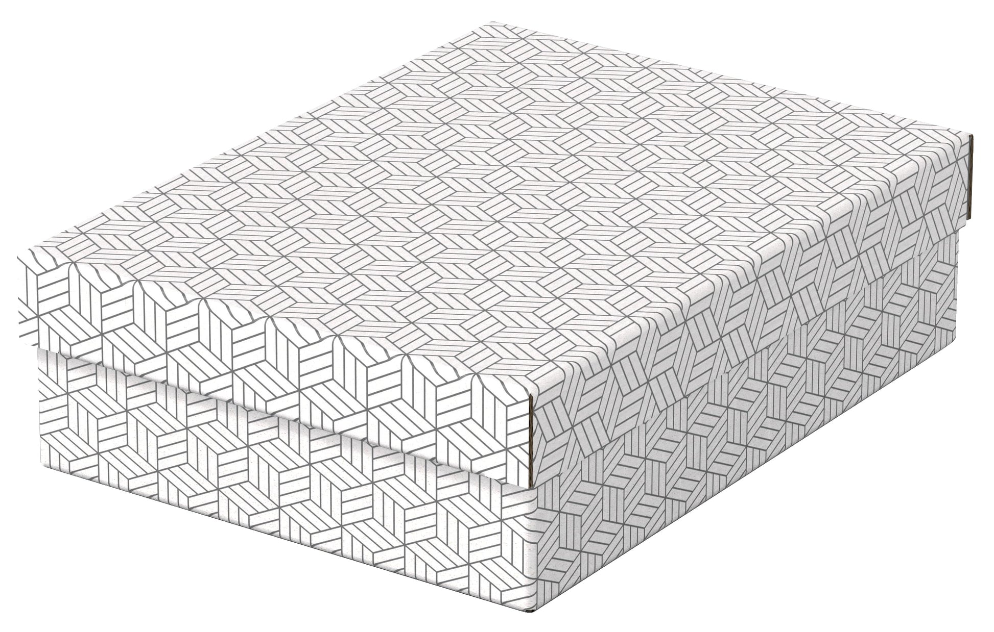 • Trijų vidutinių, šiuolaikiško ir stilingo geometrinio dizaino kartoninių dėžučių rinkinys