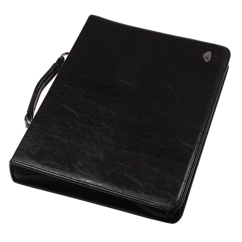 Segtuvas pasitarimams, pagamintas iš kokybiškos, dirbtinės odos. Segtuvas užsegamas užtrauktuku, turi patogią rankeną, laikiklį rašikliams, 4 žiedų laikymo mechanizmą, dokumentų skyrių ir kišenėles vizitinėms kortelėms. Tinka tiek kairiarankiams, tiek dešiniarankiams. A4 formatas. Matmenys: 39 x 25 x 5,5 cm . Juodos spalvos.