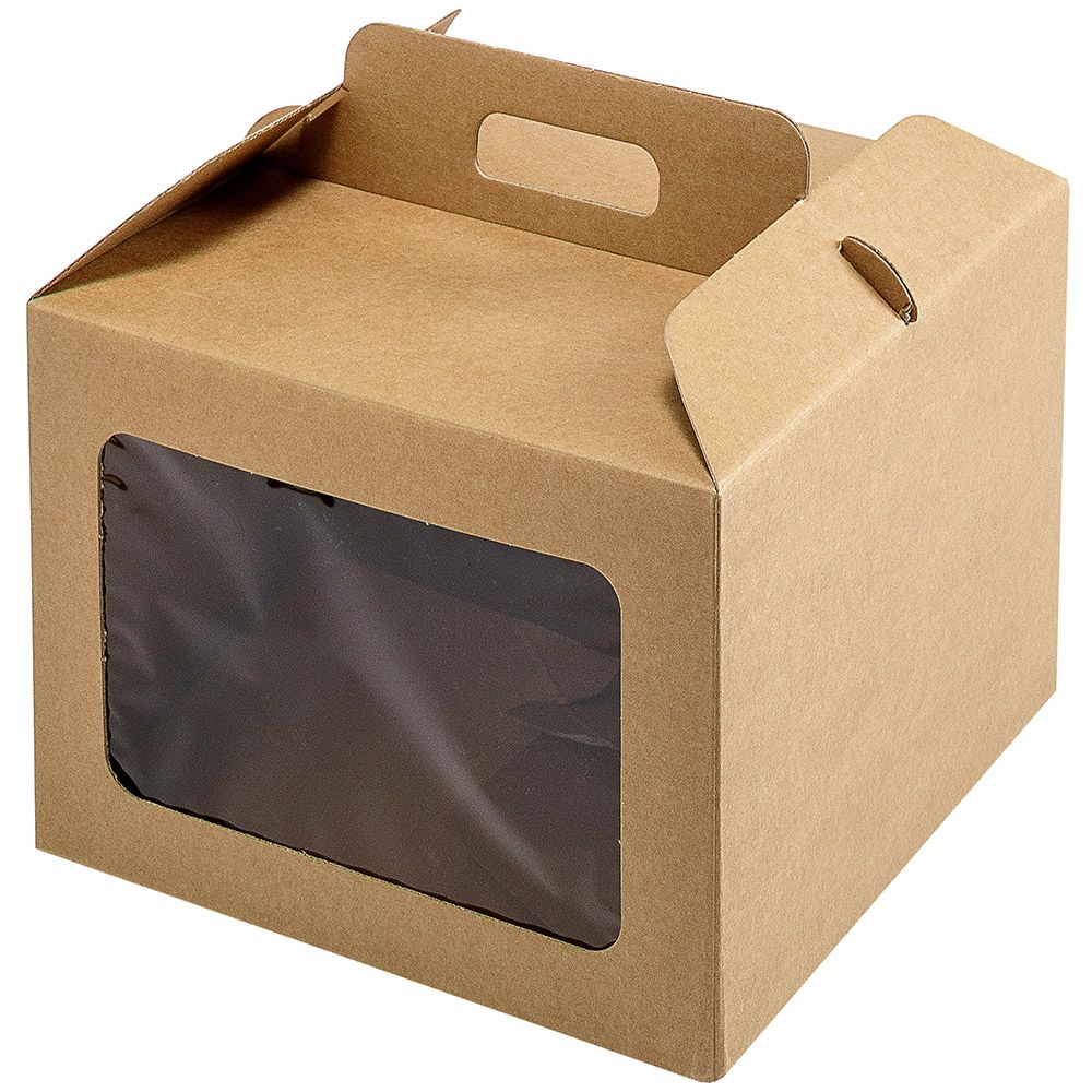 Dovanų dėžė su rankena ir langeliu, 245 x 245 x 180 mm, ruda