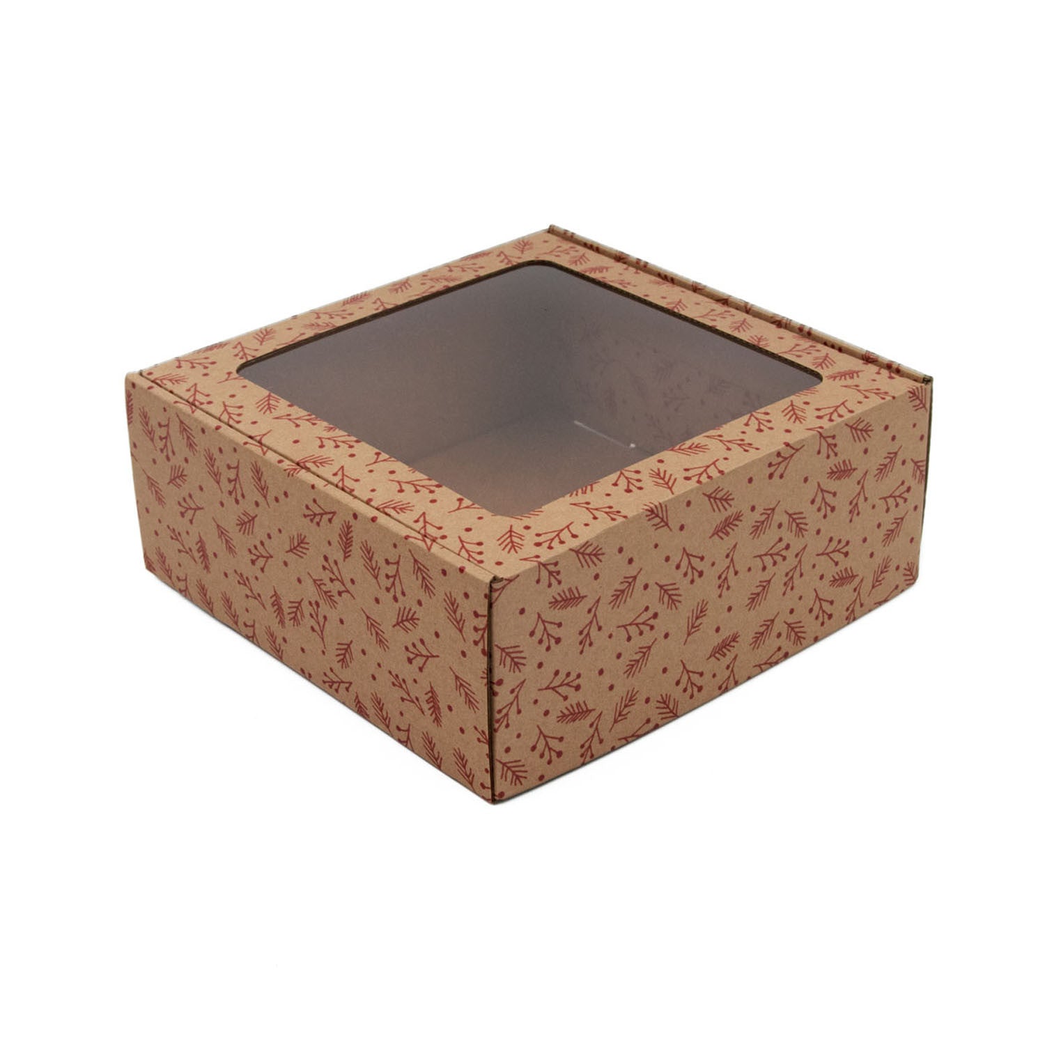 Dovanų dėžutė, ruda, kvadratinė su langeliu, Red Berries