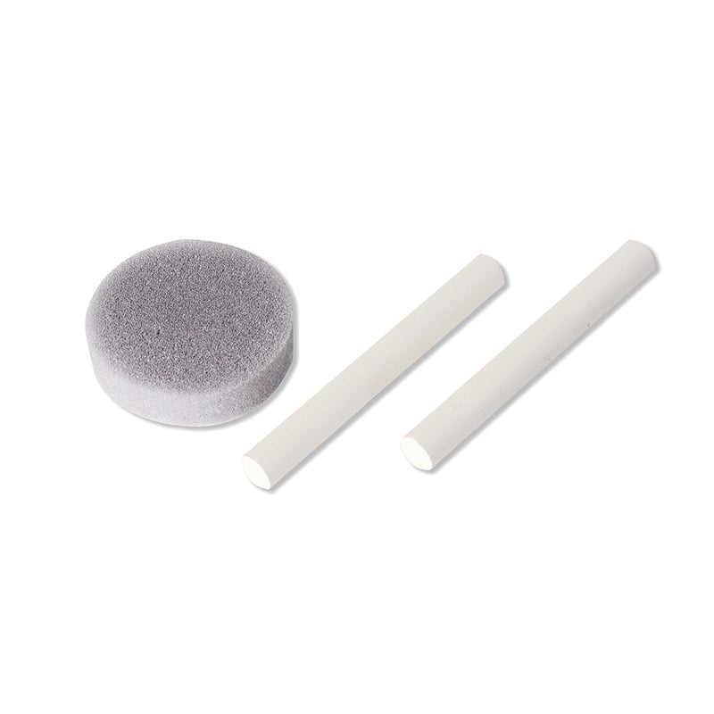 • Komplekte yra dvi kreidos lazdelės + kempinėlė ir individualus maišelis.