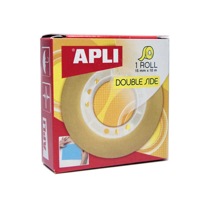 Dvipusė lipni juostelė APLI, 15 mm x 10 m, skaidri