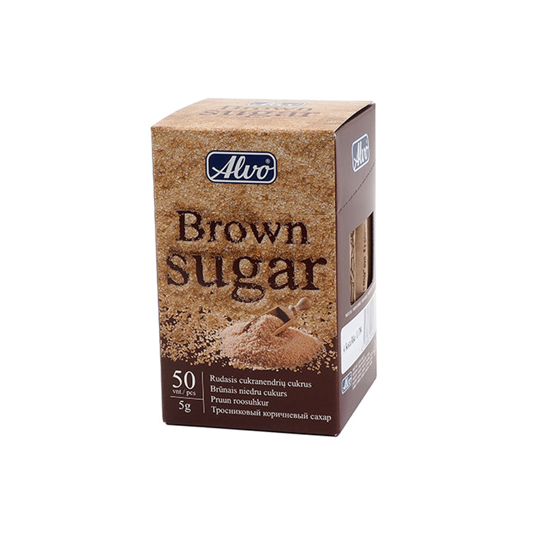 Fasuotas cukrus ALVO, rudas, 50 vnt po 5 g