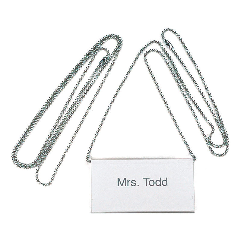 Nikelio spalvos. Tinka visoms DURABLE vardinėms kortelėms, išskyrus priklijuojamas kortelesir korteles su spaustukais. Ilgis 85 cm. Dėžutėje 10 vnt.