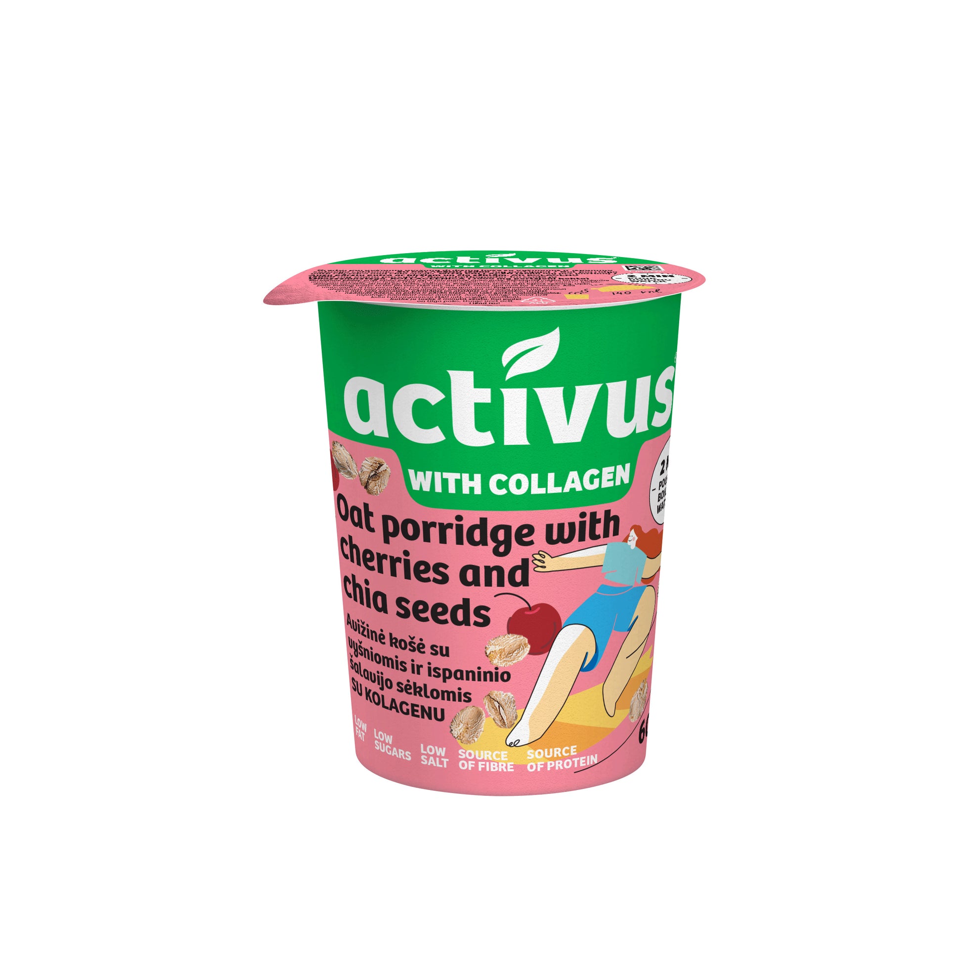 Greitai paruošiama avižinė košė ACTIVUS, su vyšniomis ir ispaninio šalavijo sėklomis, 60g