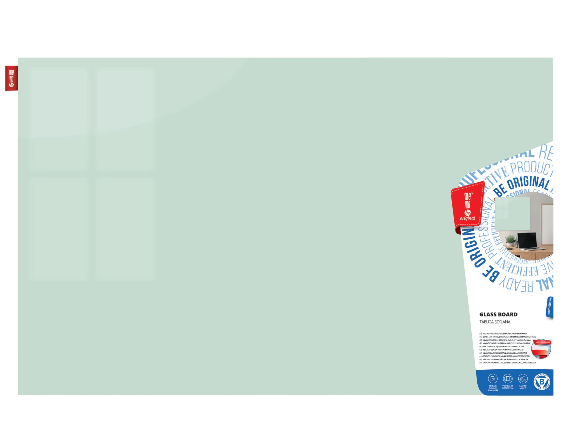Grūdinto stiklo magnetinė lenta MEMOBE, 150x100 cm, balta