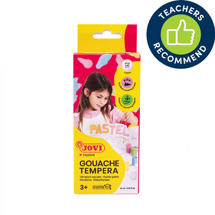 • Guašas JOVI TEMPERA, 6 pastelinių spalvų rinkinys. Guašas „Tempera“ yra fantastiškai linksmų, maišomų spalvų, kuris pavers bet kokį popierių, kartoną, medį, audinį, modelino ar keramikos paviršių meno kūriniu.