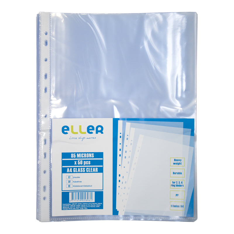 Įmautė dokumentams ELLER, A4, 85 mikr., (pak. - 50 vnt.), skaidri