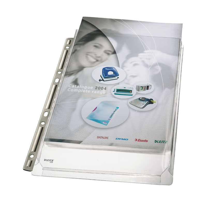 Įmautė su metaliniu krašteliu. Pagaminta iš ypač tvirto polipropileno. Turi išplėtimą ir galima įdėti iki 200 lapų. Universalios skylutės. Tinka visų tipų segtuvams. Skirta įvairiems dokumentams, kopijoms. A4 formatas. Skaidri. Pakuotėje 3 vnt.