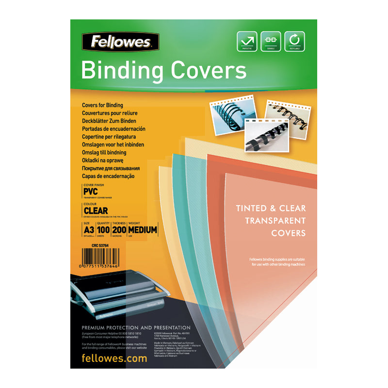 Įrišimo viršeliai FELLOWES, A3, 200 mikr, skaidri, (pak. - 100vnt.)