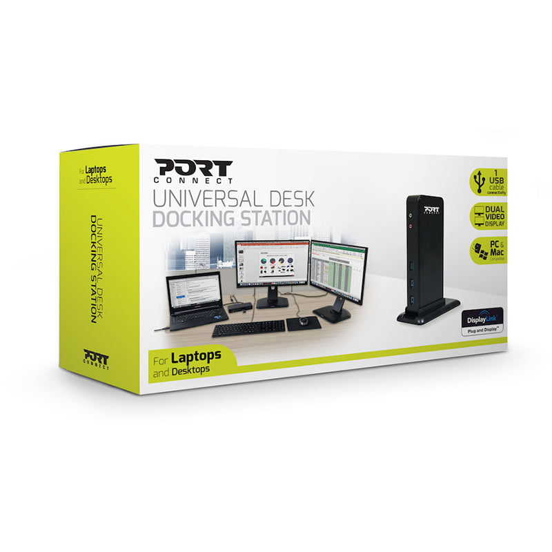 • UNIVERSAL DESK DOCKING STATION leidžia vienu metu sujungti iki 10 įrenginių.