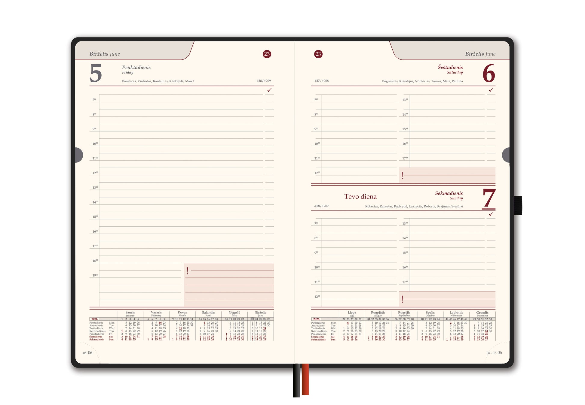 Kalendorius AMBASSADOR BLACK EDITION, 2026, PU, A5, raudona