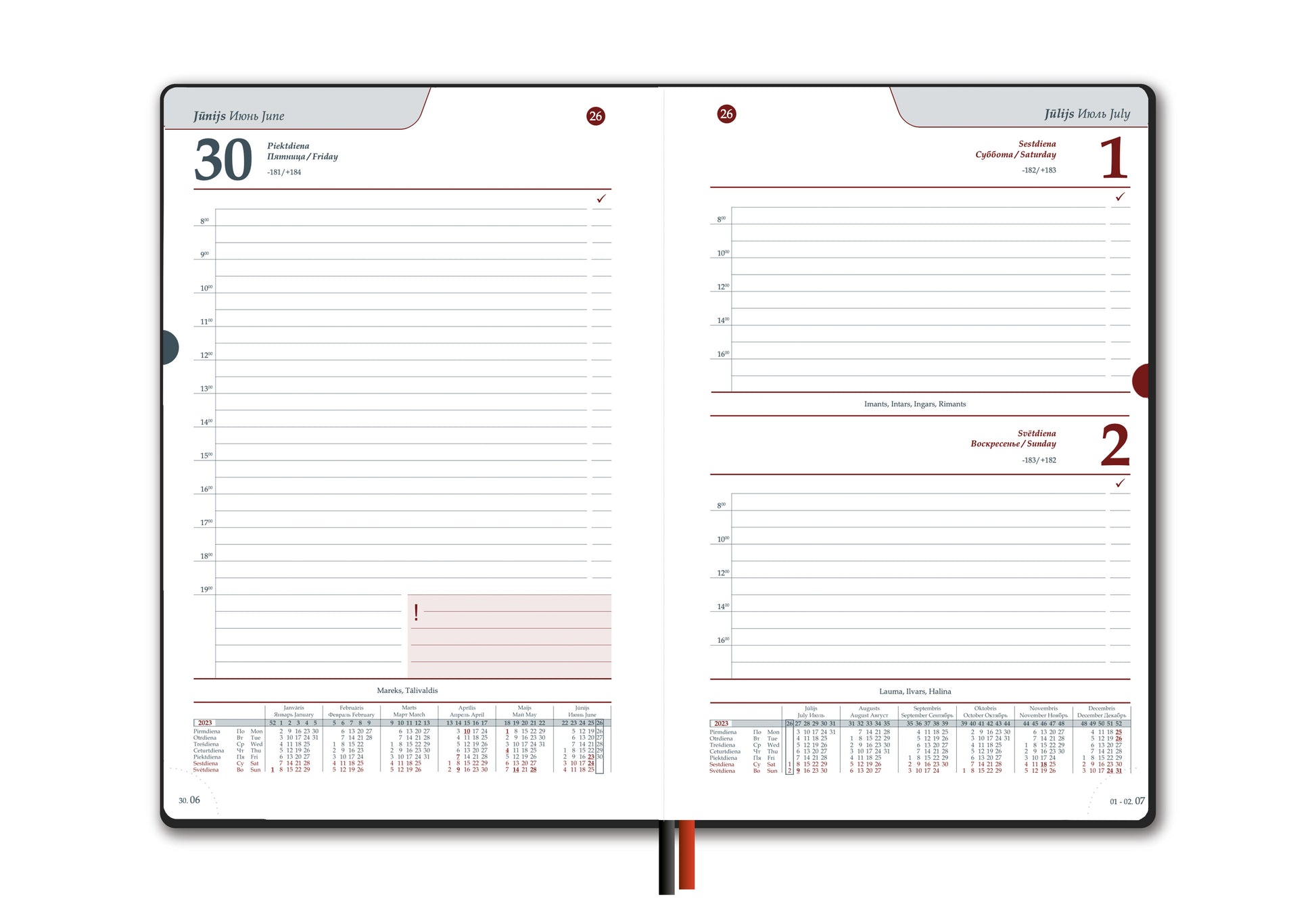 • Atvartas: vienas puslapis vienai dienai, perforuoti lapų kampai, vardadieniai