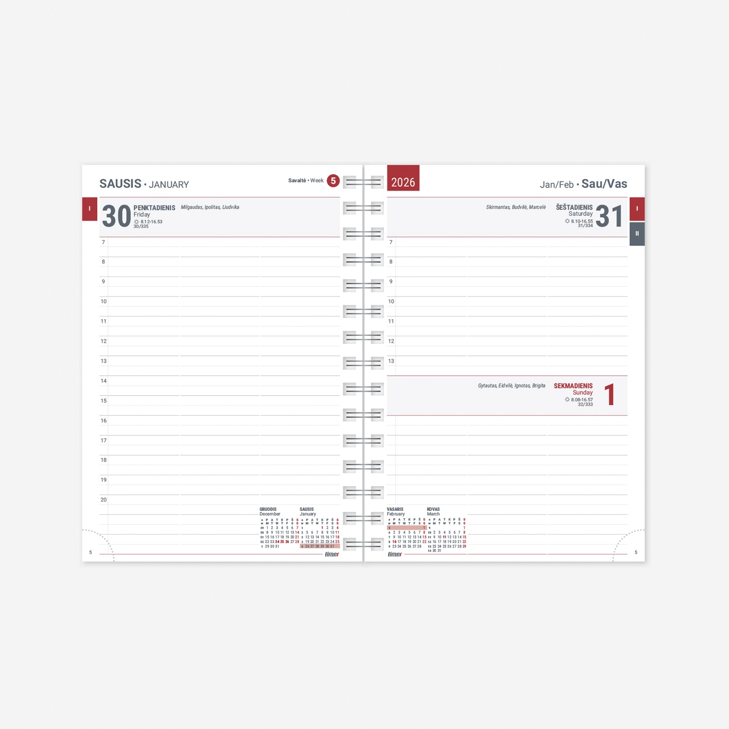• Atvartas: vienas puslapis vienai dienai. Perforuoti lapų kampučiai