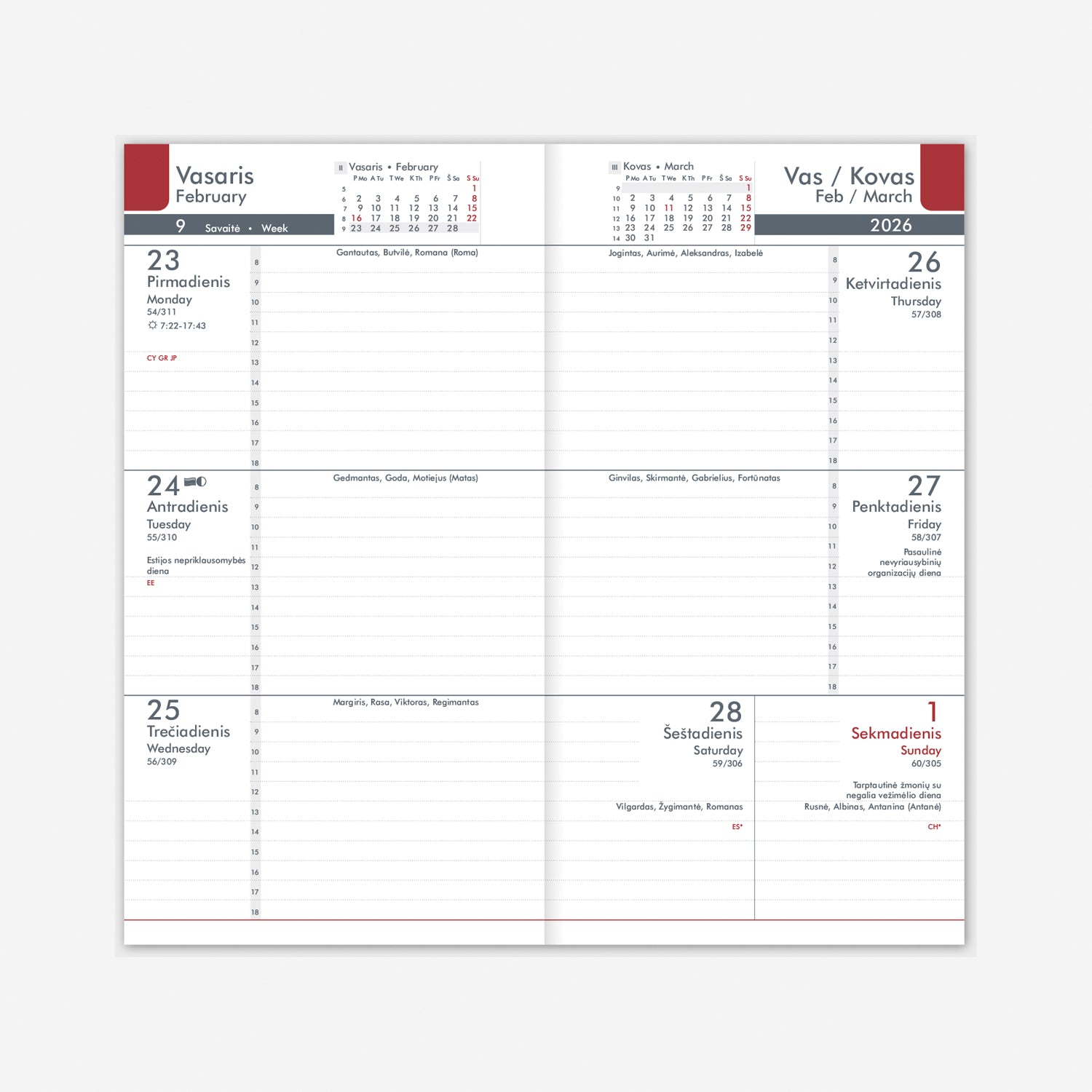 Kalendorius MIDI 2026, 90 x 167 mm, PU, tamsiai mėlyna