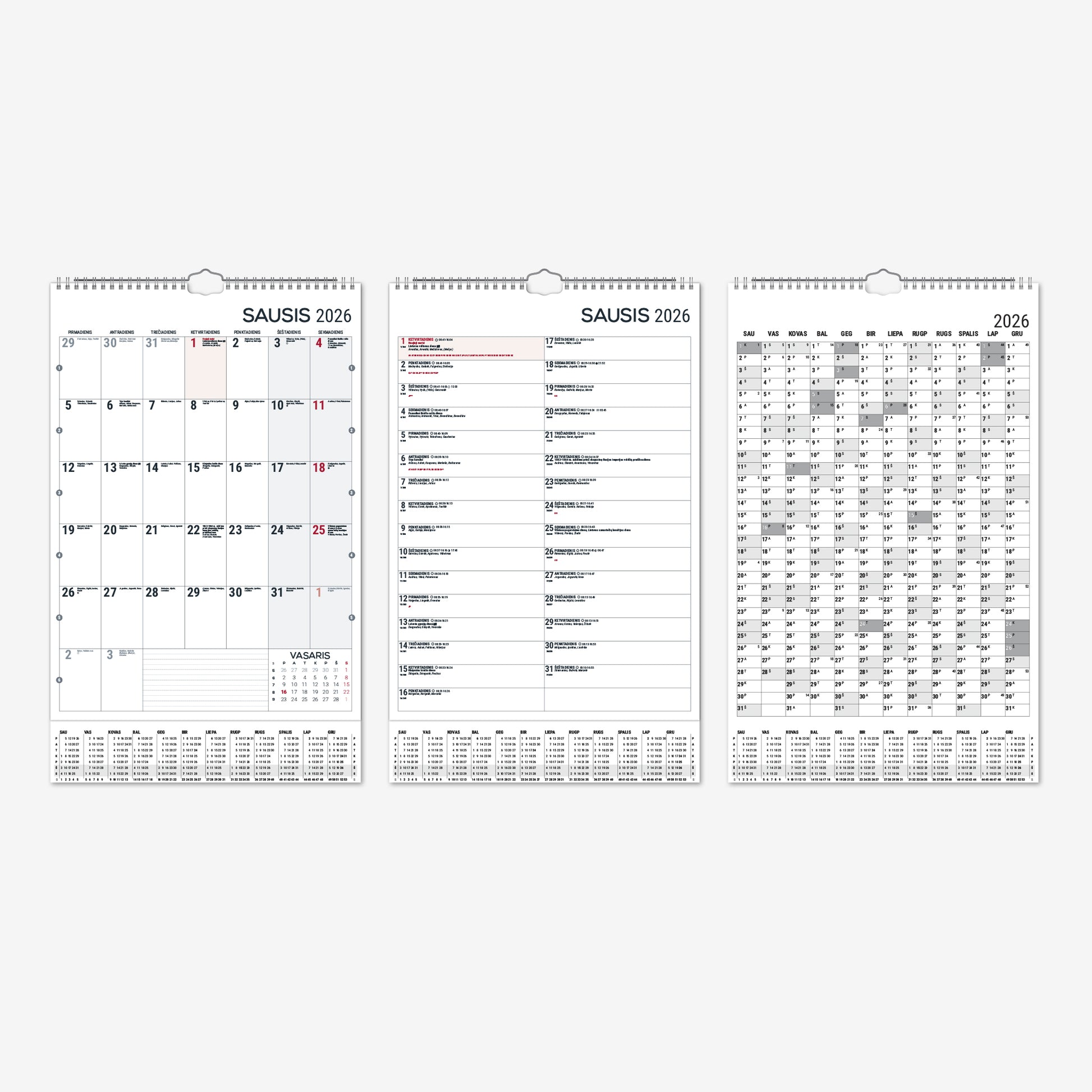 • Atvartas: skirtas visam mėnesiui. Su pažymėtomis vardų, valstybinių ir kalendorinių švenčių dienomis, mėnulio fazėmis
