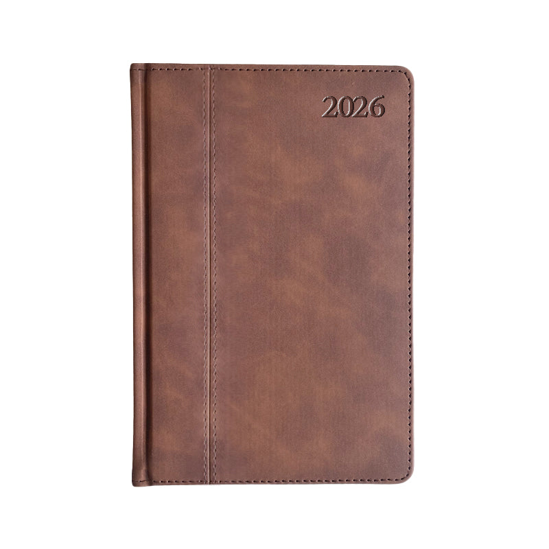 Kalendorius PREMIER PLUS 2026, PU, A5, tamsiai ruda
