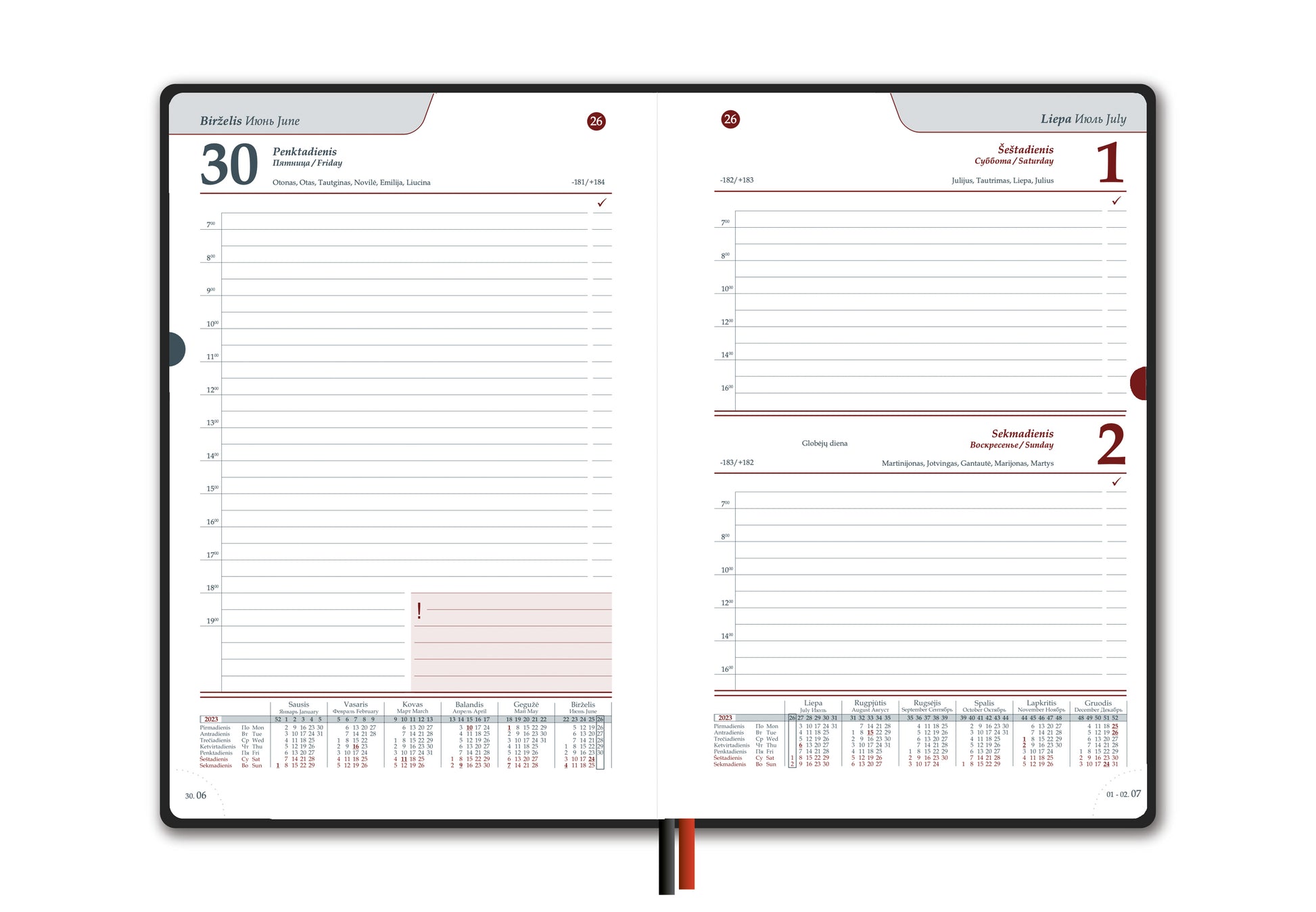 • Atvartas: vienas puslapis vienai dienai, perforuoti lapų kampai, vardadieniai