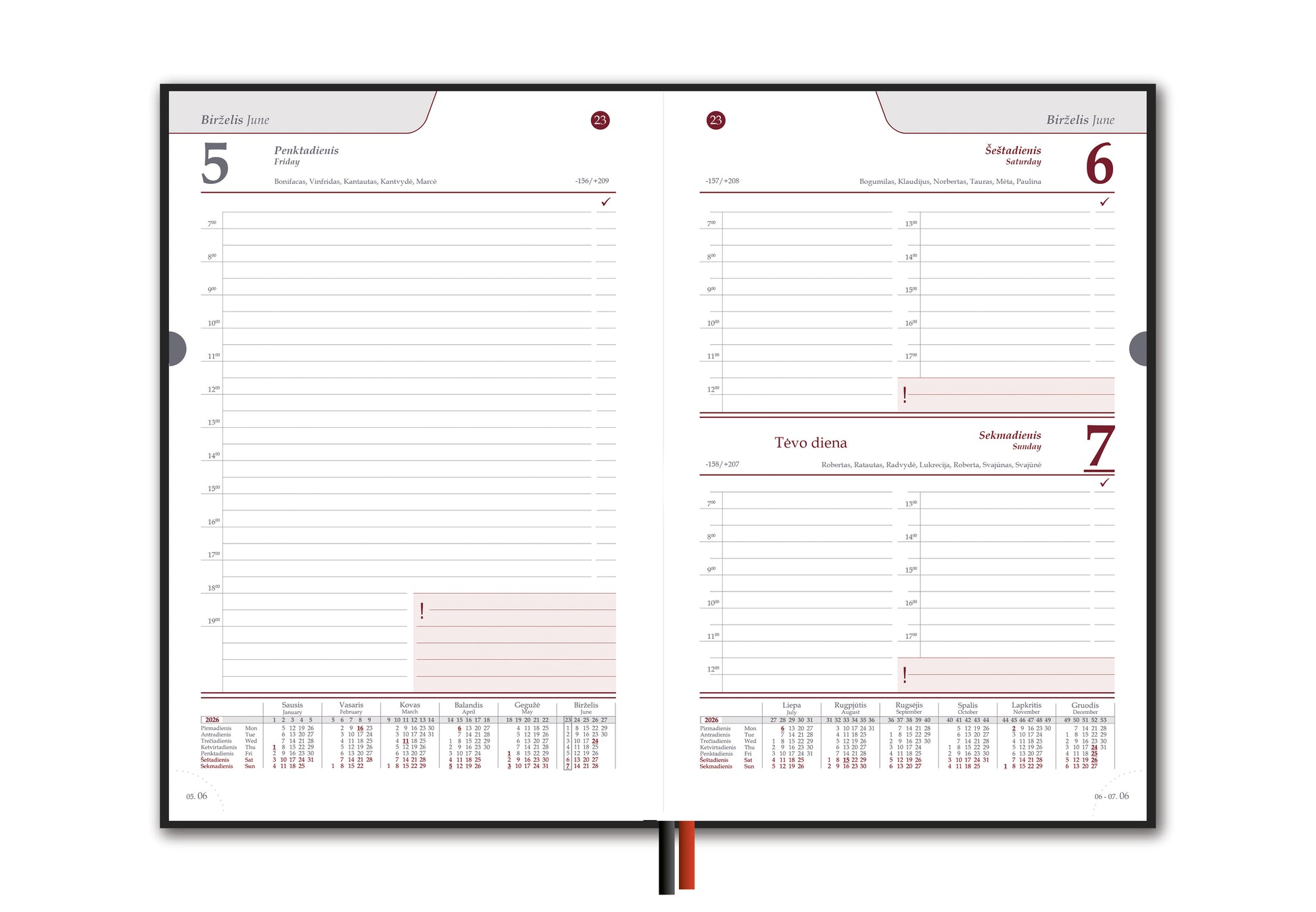 • Atvartas: vienas puslapis vienai dienai, perforuoti lapų kampai, vardadieniai (lietuvių)