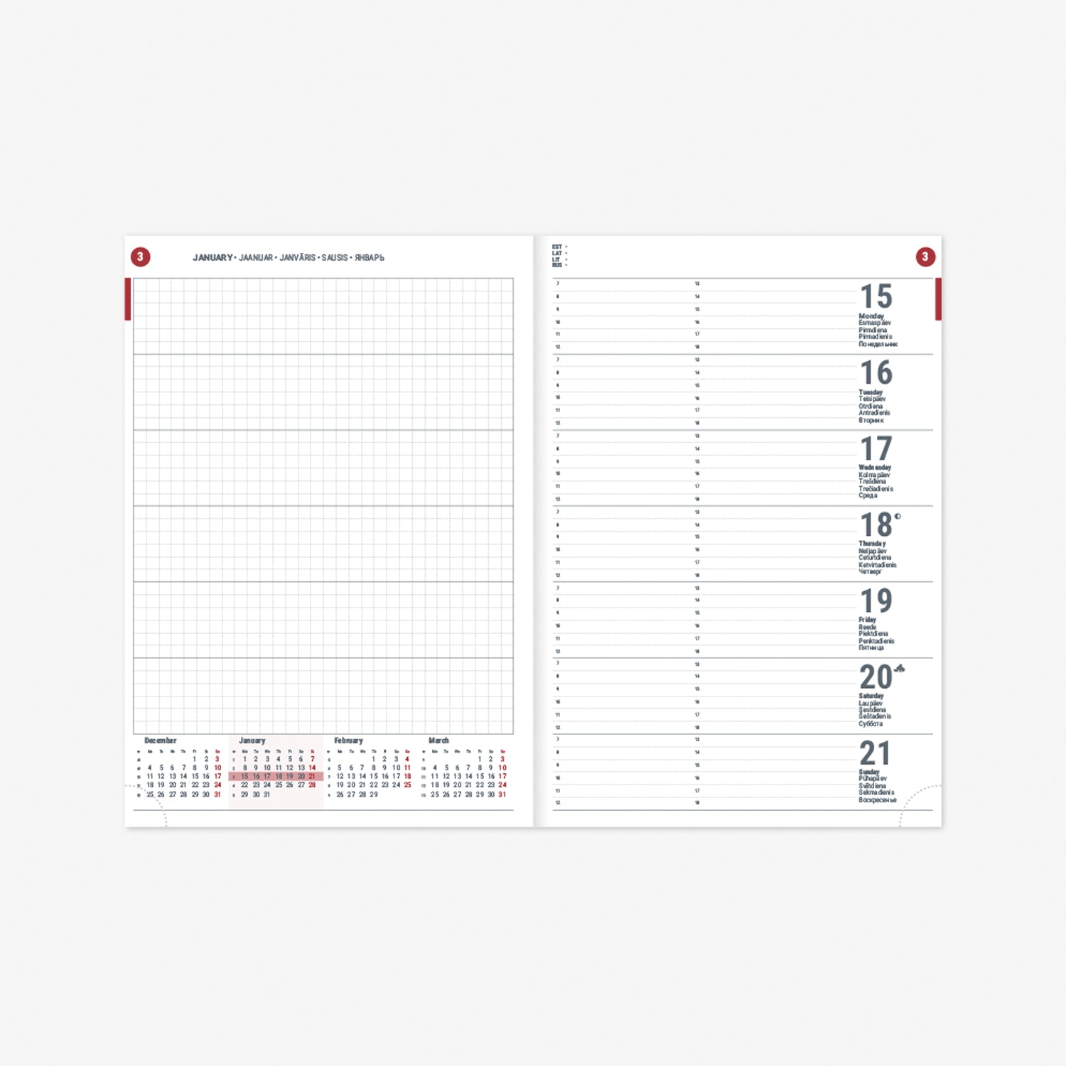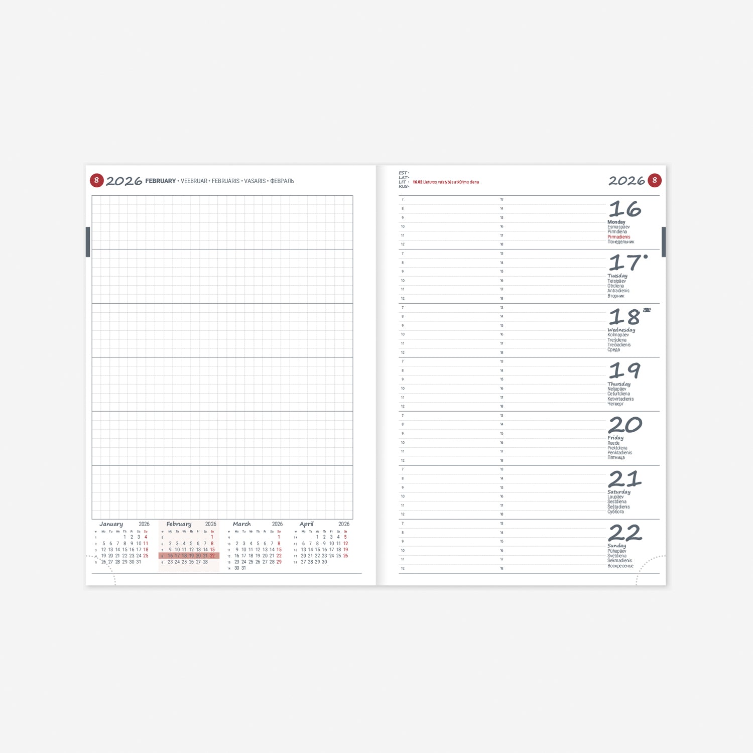 Kalendorius Unika Week 2026, A5, PVC tamsiai mėlyna