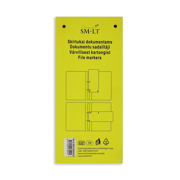Kartoniniai skirtukai 11x23,5cm, dvipusis spalvotas kartonas, 100 vnt., geltonos sp.