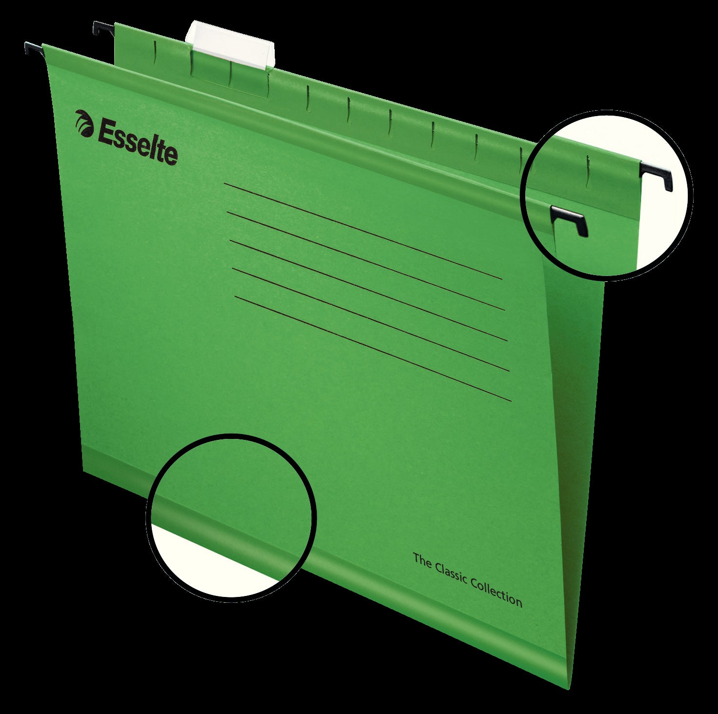 A4 formatas. Skirtas kartotekinėms spintoms. Tvirto kartono. Plastiku padengti kabliukai. Žalios spalvos. Dėžėje 25 vnt.