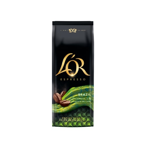 L'OR Brazil kavos pupelių skonis – lengvas ir švelnus. Lyg beribis mėlynas Brazilijos dangus. Ši 100 % arabikos kava pasižymi riešutinėmis natomis ir žaliųjų vaisių skoniu, su kiekvienu gurkšniu juntamas kreminis, aksomo švelnumo pojūtis.L'OR kavos pupelės yra sertifikuotos Rainforest Alliance sertifikatu.Intensyvumo lygis - 6Skrudinimas - 2 iš 5Sodrumas - 3 iš 5Citrusai - 2 iš 5Pajuskite aistrą, kurios vedini kavos L'OR kūrėjai visais savo pojūčiais kuria jums neprilygstamą malonumą. Tai – skonio šedevras.