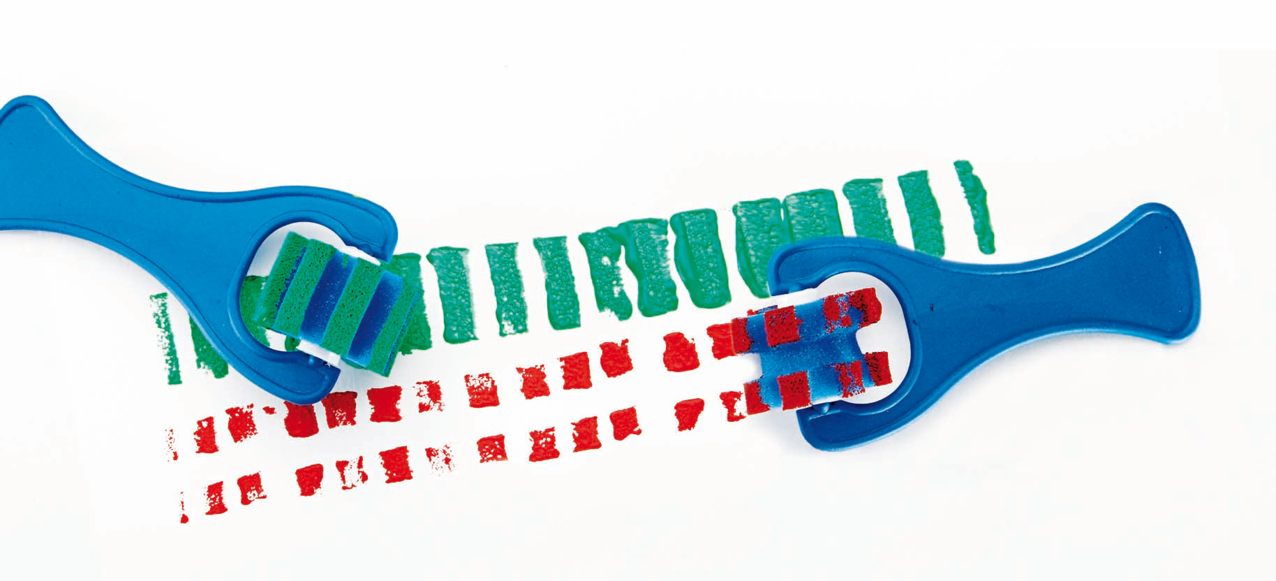 3 skirtingų formų putplasčio voleliai su atsparia plastikine rankena, idealiai tinkantys su bet kokiais dažais – tempera, pirštų dažais ar akriliniais dažais. Taip pat lengva valyti su muilu ir vandeniu