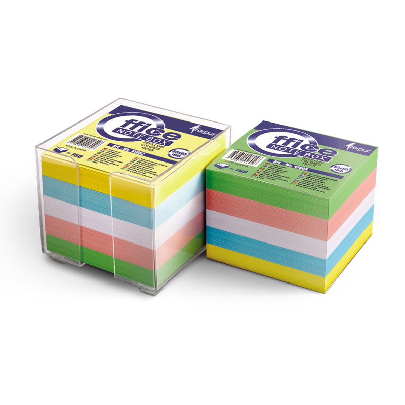 Lapeliai užrašams dėžutėje, lapelių matmenys 85 x85 mm, FORPUS, spalvoti