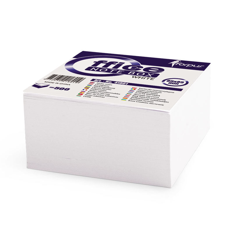 Lapeliai užrašams suklijuoti iš vieno šono. Baltos spalvos. Patogūs naudoti ir laikyti ant darbo stalo, nes neišsibarsto. Popieriaus storis 80 g/m2. Matmenys 90x90 mm. Pakuotėje - 500 lapelių.