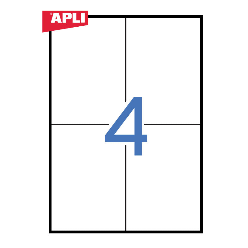 Etiketiniai lipdukai ALPI 105x148 mm, A4 formatas, 100 lapų, lape 4 vienetai etikečių. Baltos spalvos. Paprastas ir efektyvus etikečių spausdinimas su APLI Soft Pro SE- atsisiųskite nemokamai iš www.apli.com